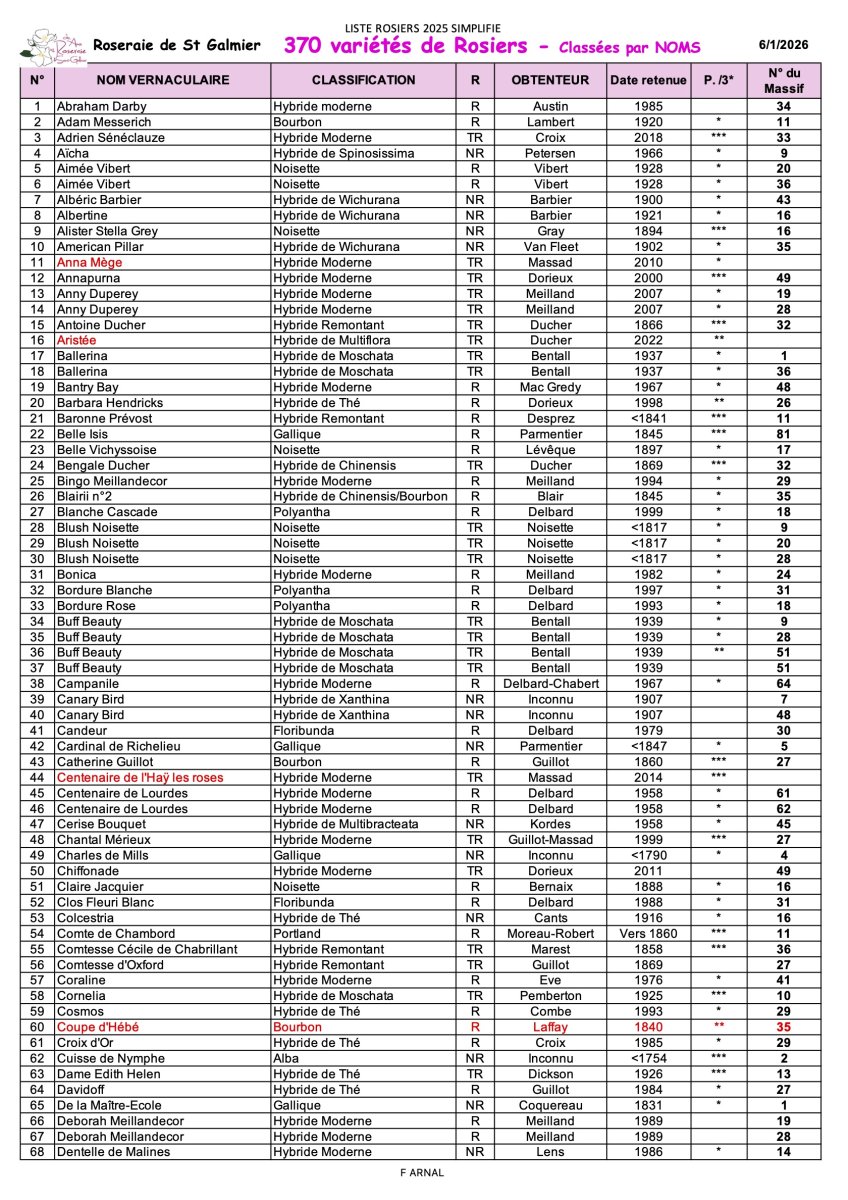 370 VARIÉTÉS de ROSIERS